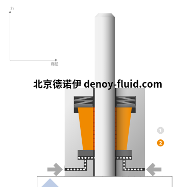 在釋放狀態(tài)下,環(huán)形活塞通過液壓或氣動壓力讓夾緊套管克服碟形彈簧的力保持松開,使圓桿能夠自由移動。?接近開關(guān)2被激活。