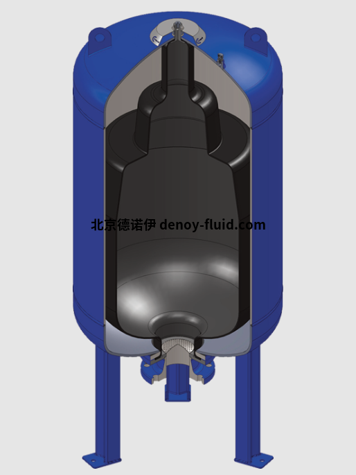 蓄能器通過安裝在容器內(nèi)部的彈性氣囊細(xì)分為氣體側(cè)和流體側(cè)。