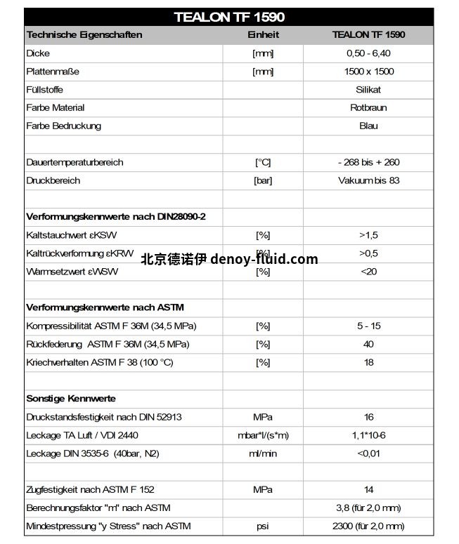 • 由于其高機(jī)械強(qiáng)度,TEALON TF 1590 可在高壓和高溫下使用,特別是在化學(xué)和石化工業(yè)中,與強(qiáng)酸、溶劑、水、蒸汽、氯等一起使用。 • TEALON TF 1590快速